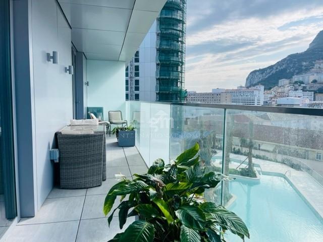 GM International Homes are pleased to offer this brand new two bedroom two bathroom apartment located on the 7th floor of the Carrara building. Offering spectacular views of the Rock of Gibraltar from its 13sqm terrace. Upon entering the apartment the hall has a good sized utility area. Open plan fully fitted modern kitchen with top of the range appliances leads onto a spacious dining and lounge area offering those breathtaking views of the Rock. Master bedroom with ensuite bathroom offers a walk in shower, with heated towel rail and under floor heating and fitted wardrobes. Second bedroom is a double sized room. Family bathroom with bath. The apartment benefits from reversible air conditioning and ceiling to floor glass windows and doors. This new development offers a parking space with the apartment, communal outdoor swimming pool and a membership scheme gymnasium. Centrally located within the Europort area with easy access to shops, restaurants and within walking distance to the town centre.