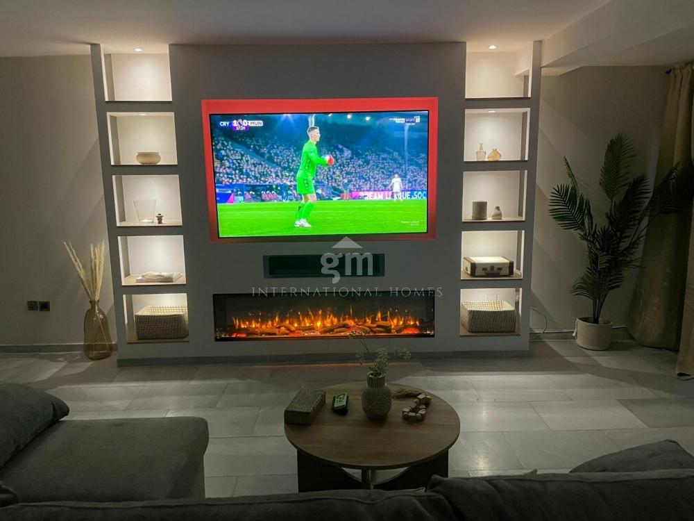 The open-plan living room is bathed in natural light, flowing seamlessly towards the panoramic views over the Bay of Gibraltar from its 15sqm terrace, creating a stunning backdrop for everyday living. The living area is over 40sqm with media wall with fire place. Air conditioning throughout with marble flooring and ample storage thoroughout the property.