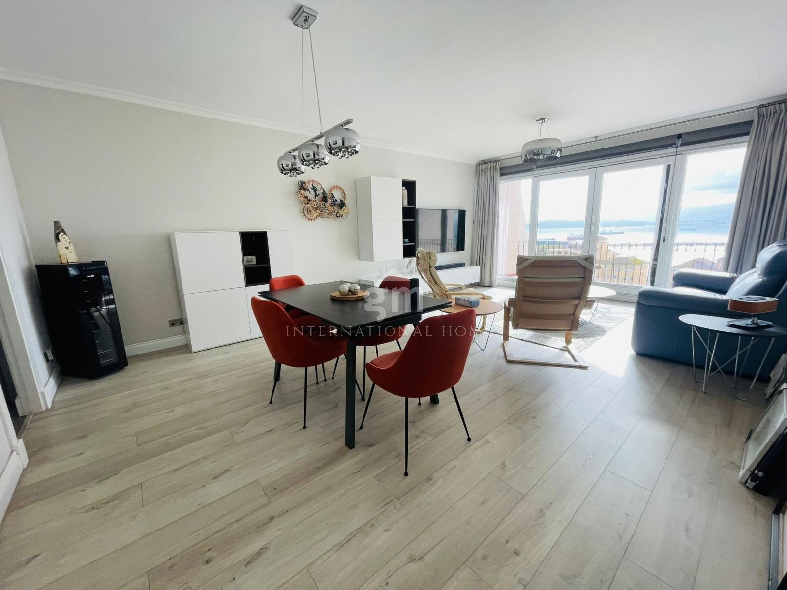 This beautiful apartment has a spacious and open living diner leading out onto a wonderful terrace overlooking the alameda gardens and the bay of Gibraltar in the distance. The modern kitchen is large, and fully fitted with all the appliances one may need. A generous primary bedroom enjoys made to measure fitted wardrobes as well as featuring an en-suite shower room. The secondary bedroom is also of ample size and has also been fitted with made to measure wardrobes; both secondary bedrooms have access to the family bathroom.