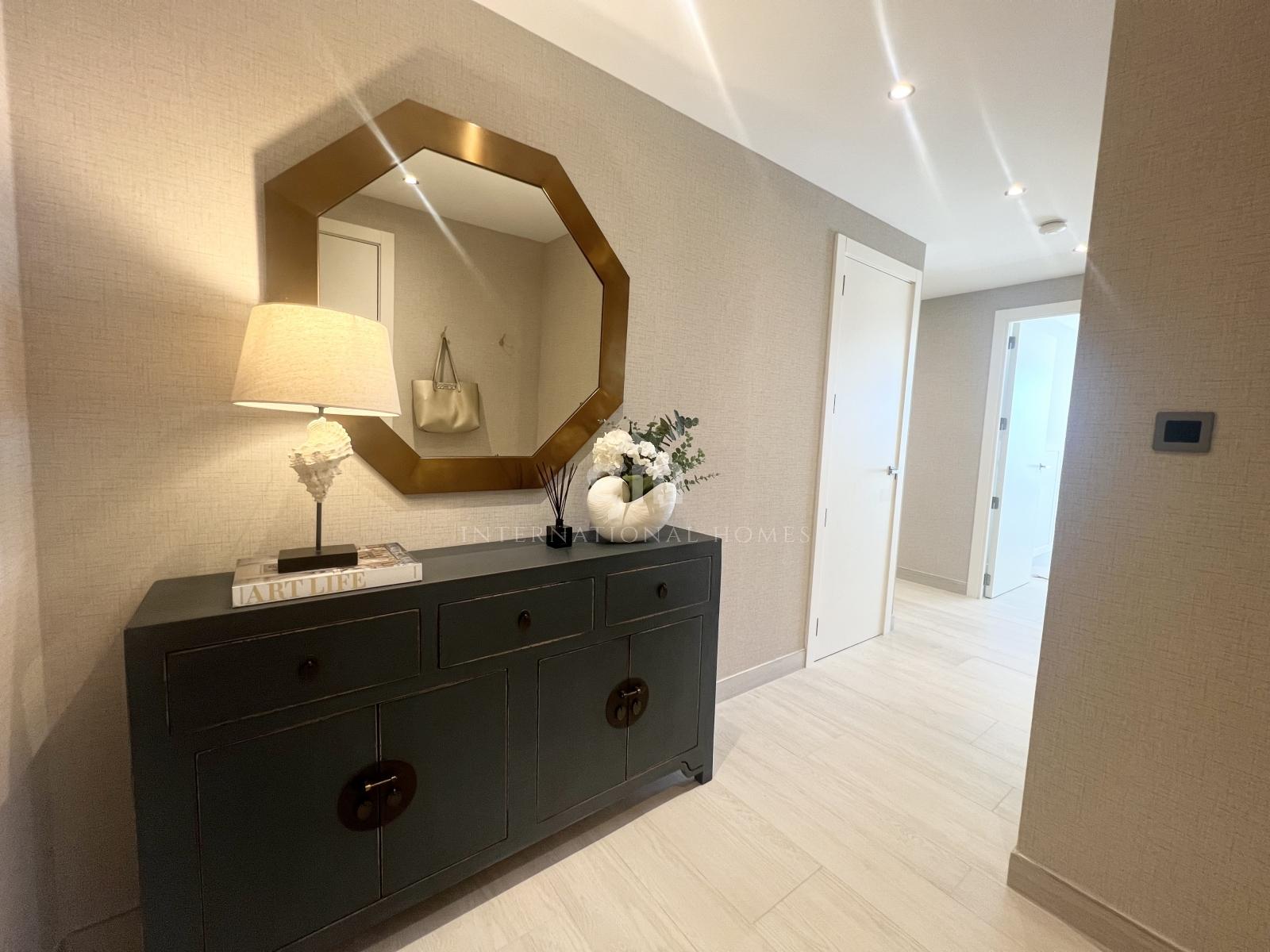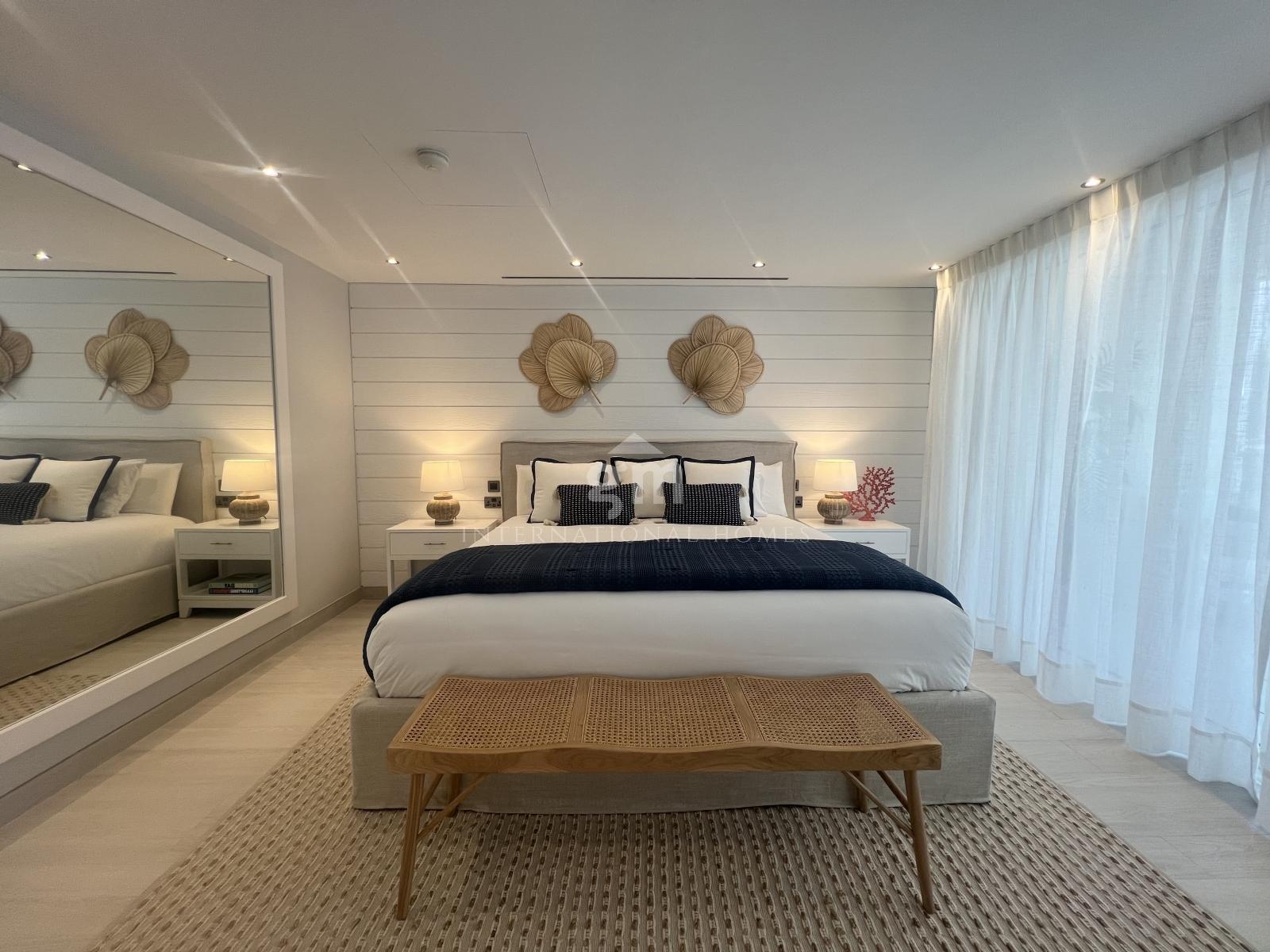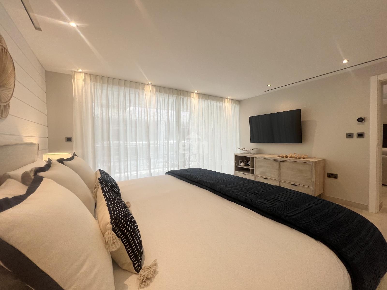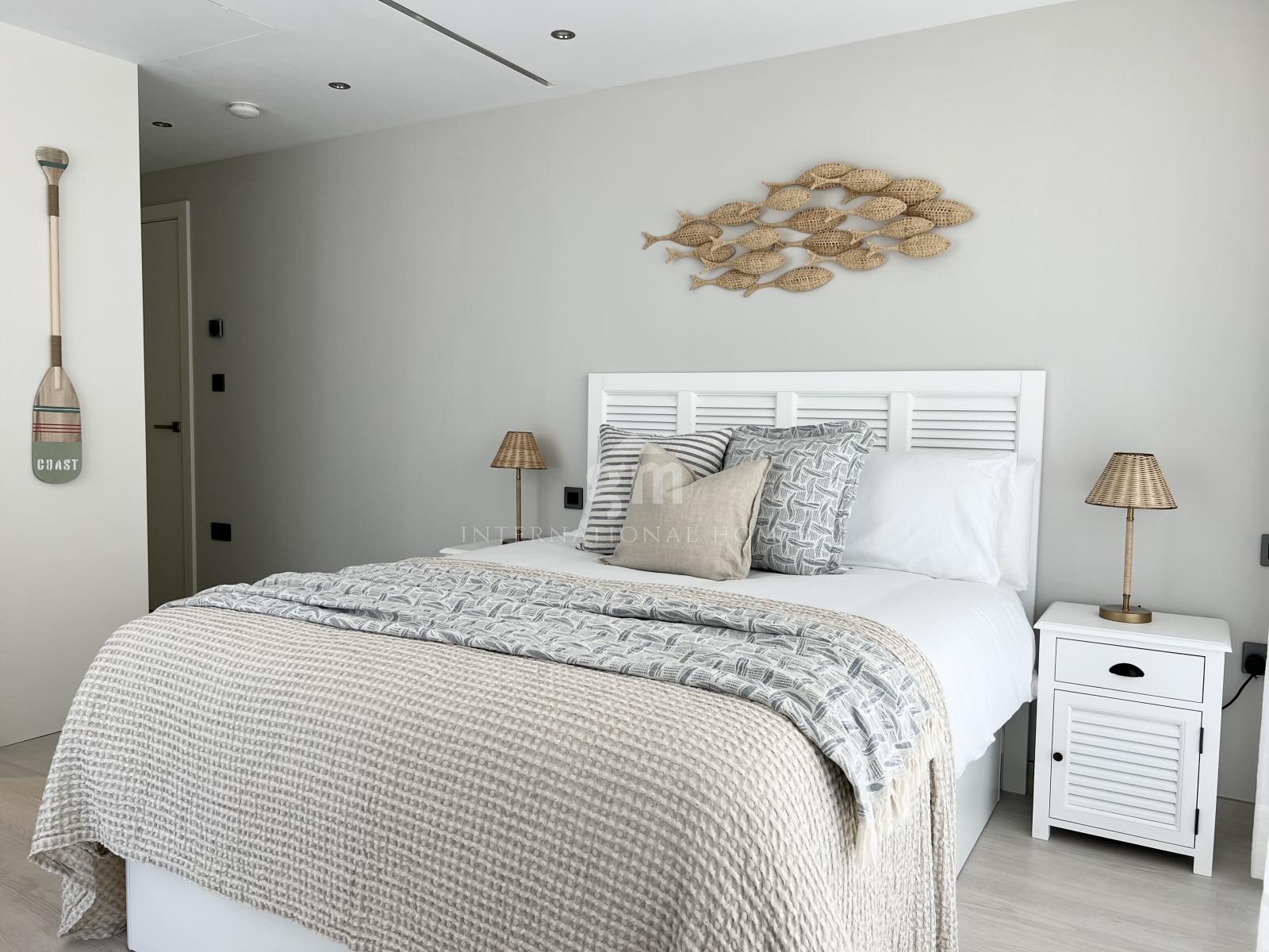 The property boasts of a modern open-plan kitchen with top of range electrical appliances that seamlessly flows into a spacious living room area. From here, you can stop out onto a large terrace that offers lovely views towards the entrance to the marina. Whether you're enjoying a morning coffee or hosting a gathering with friends, this 38sqm terrace is the perfect place to soak in the beauty of your surroundings.