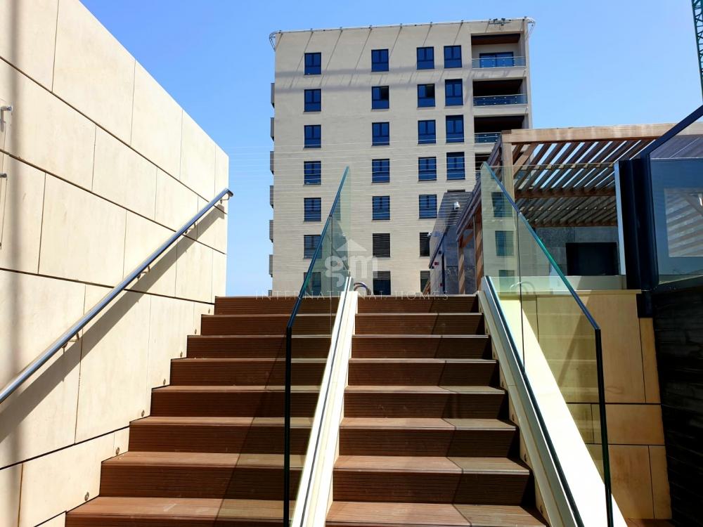 The property offers two double bedrooms, each featuring an en-suite bathroom and ample fitted wardrobes with internal LED lighting. Two expansive terraces provide outstanding views across the bay, perfect for enjoying Gibraltar’s sunsets and outdoor living.