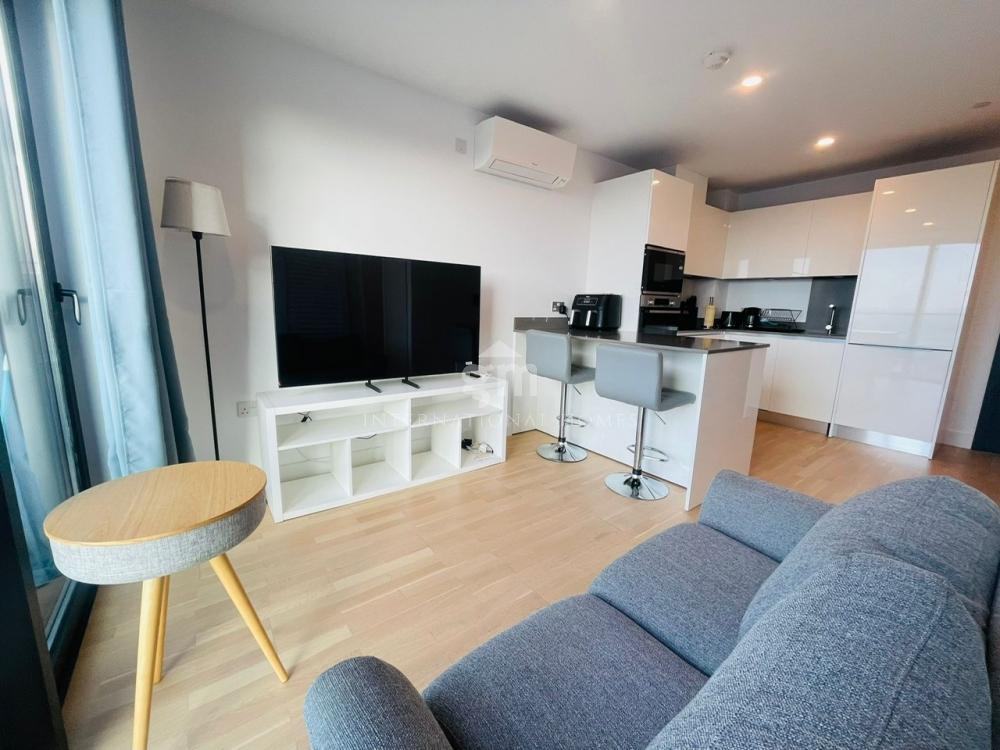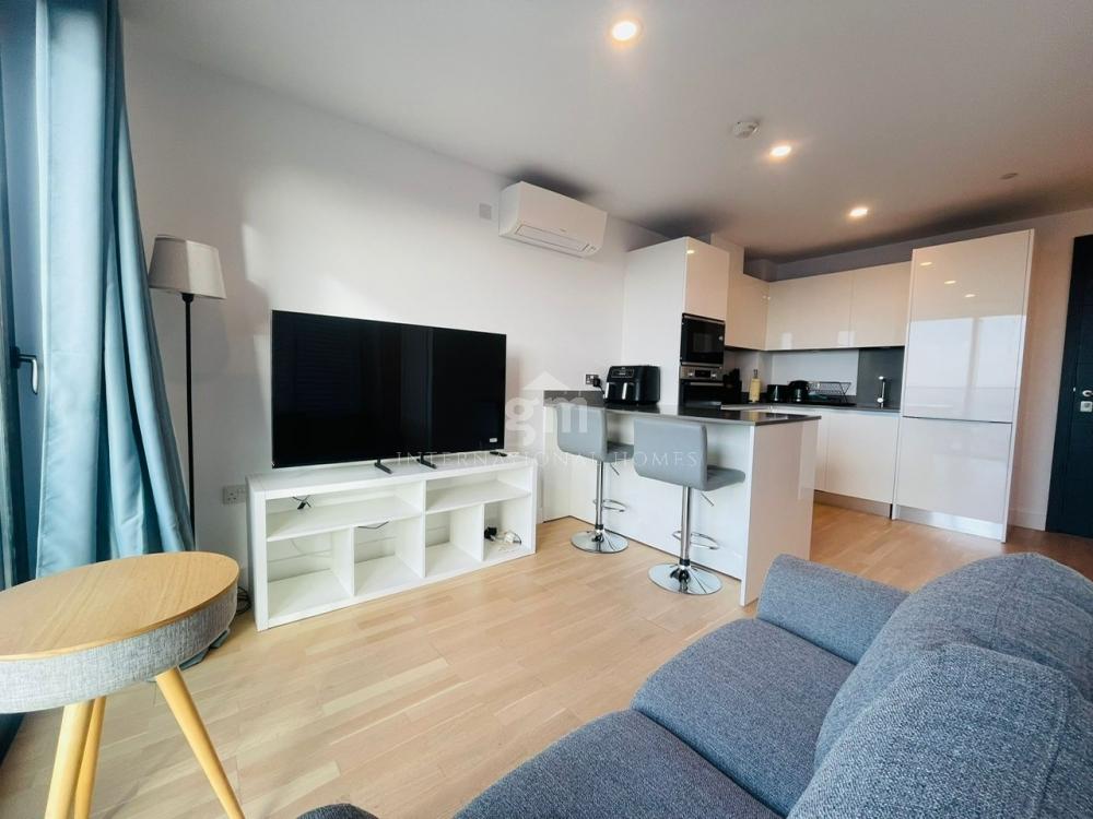 New on the market a Studio apartment with west facing views. This Wren layout studio is located on the top floor and has a separate sleeping area which is divided by sliding doors. Ample storage in the sleeping area. Open plan kitchen/living area with Juliet balcony. All properties have reverse air conditioning throughout, hard wood flooring and fitted wardrobes, high specification contemporary fitted kitchens with quartz stone worktops, top of the range electrical appliances, white designer shower with porcelain tiles, are just some of the modern interior finishing. Offering many communal amenities which include a health club with swimming pool, gym, sauna & steam room facilities and a contemporary cafe style eatery.