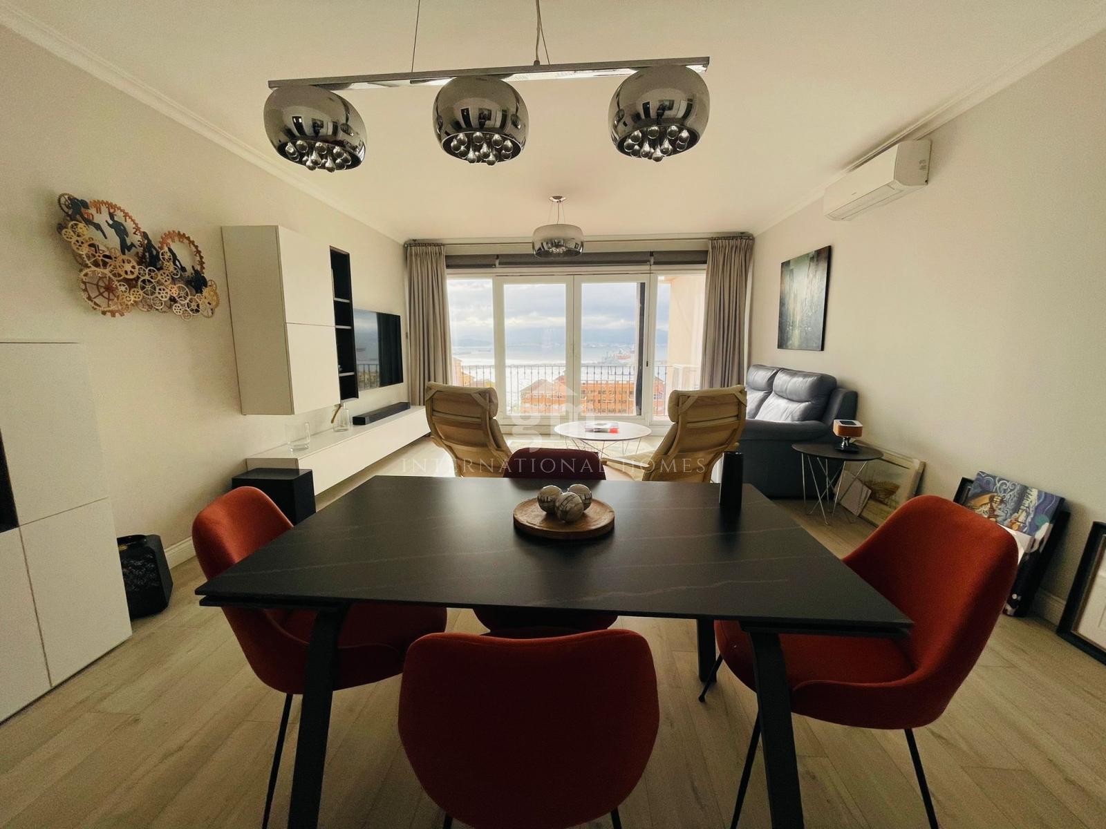 This beautiful apartment has a spacious and open living diner leading out onto a wonderful terrace overlooking the alameda gardens and the bay of Gibraltar in the distance. The modern kitchen is large, and fully fitted with all the appliances one may need. A generous primary bedroom enjoys made to measure fitted wardrobes as well as featuring an en-suite shower room. The secondary bedroom is also of ample size and has also been fitted with made to measure wardrobes; both secondary bedrooms have access to the family bathroom.