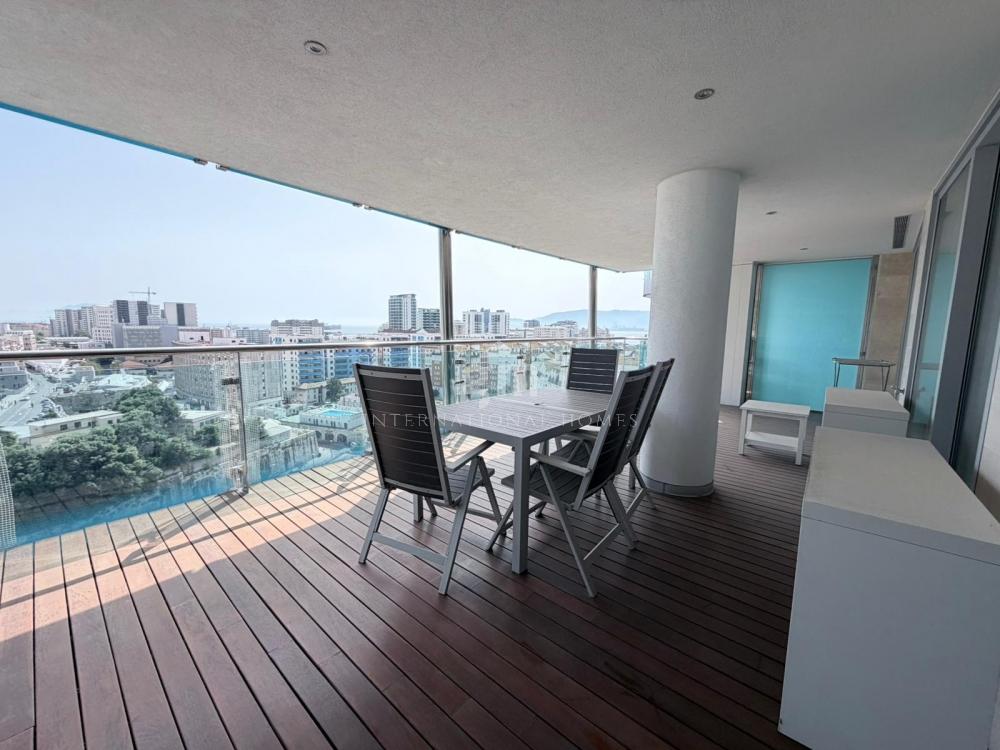 From the lounge, you step out onto an impressive 37 sqm south-facing terrace, offering stunning views towards the bay and Africa, making it ideal for outdoor dining and relaxation.