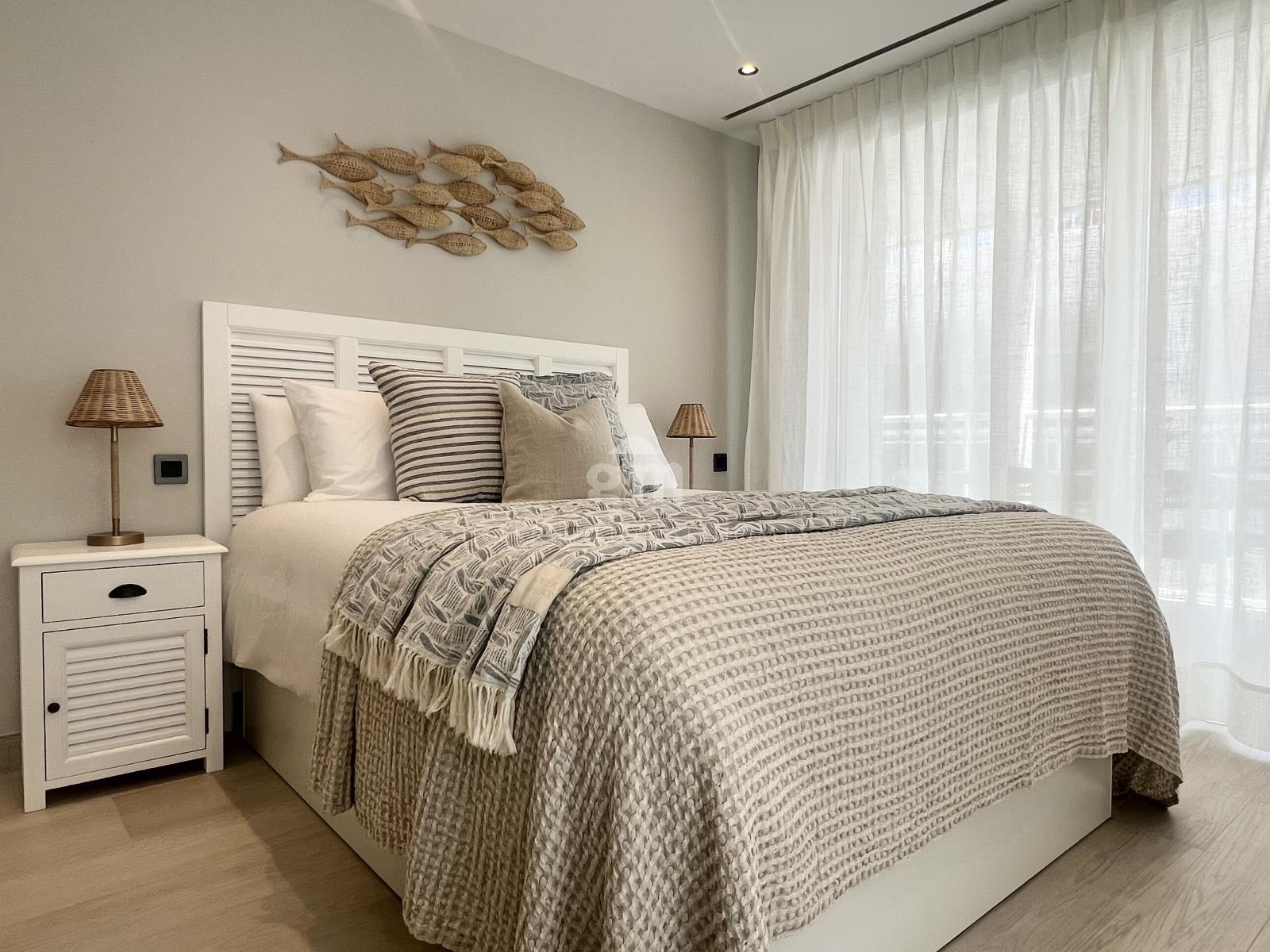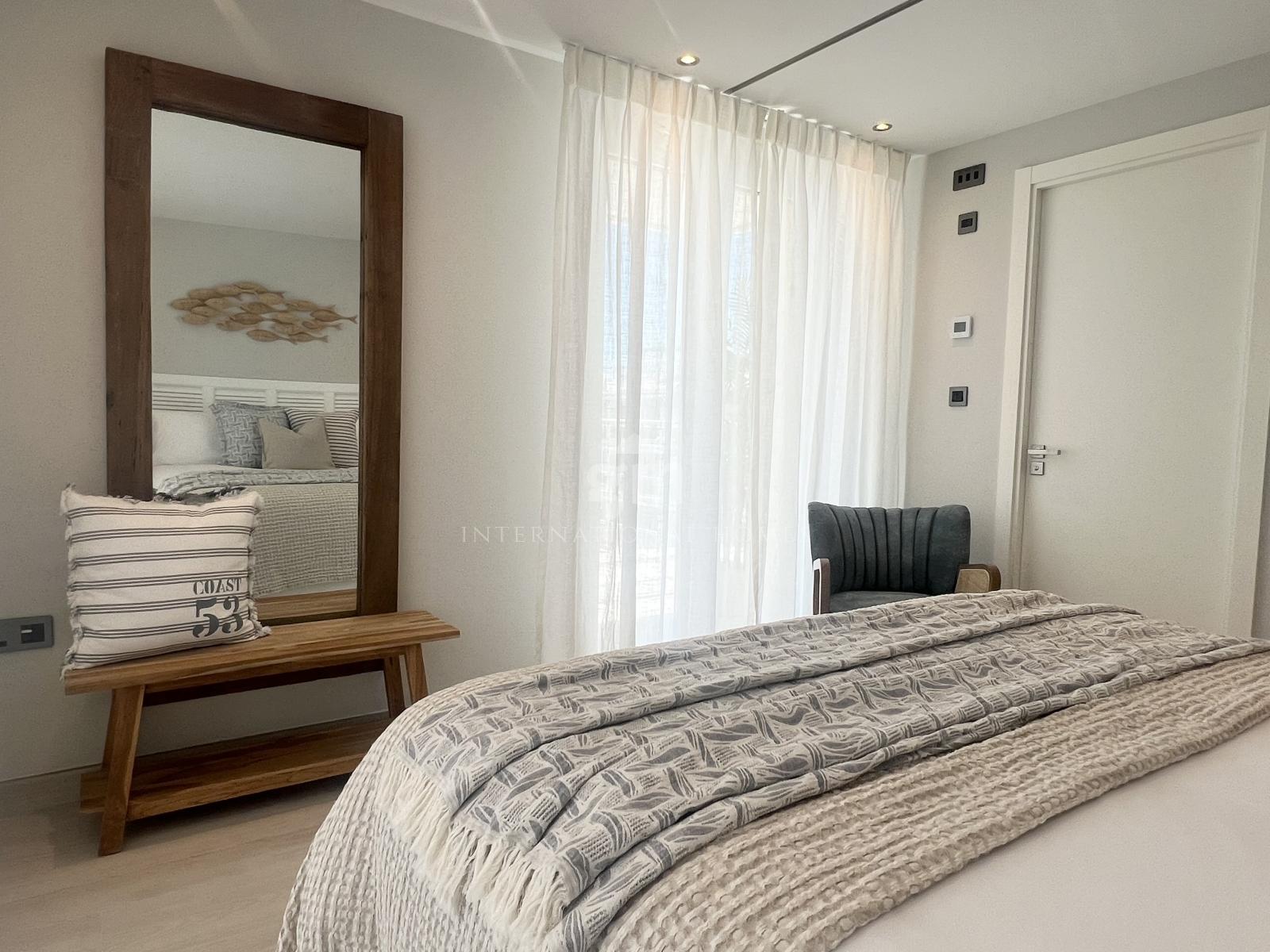 The property boasts of a modern open-plan kitchen with top of range electrical appliances that seamlessly flows into a spacious living room area. From here, you can stop out onto a large terrace that offers lovely views towards the entrance to the marina. Whether you're enjoying a morning coffee or hosting a gathering with friends, this 38sqm terrace is the perfect place to soak in the beauty of your surroundings.