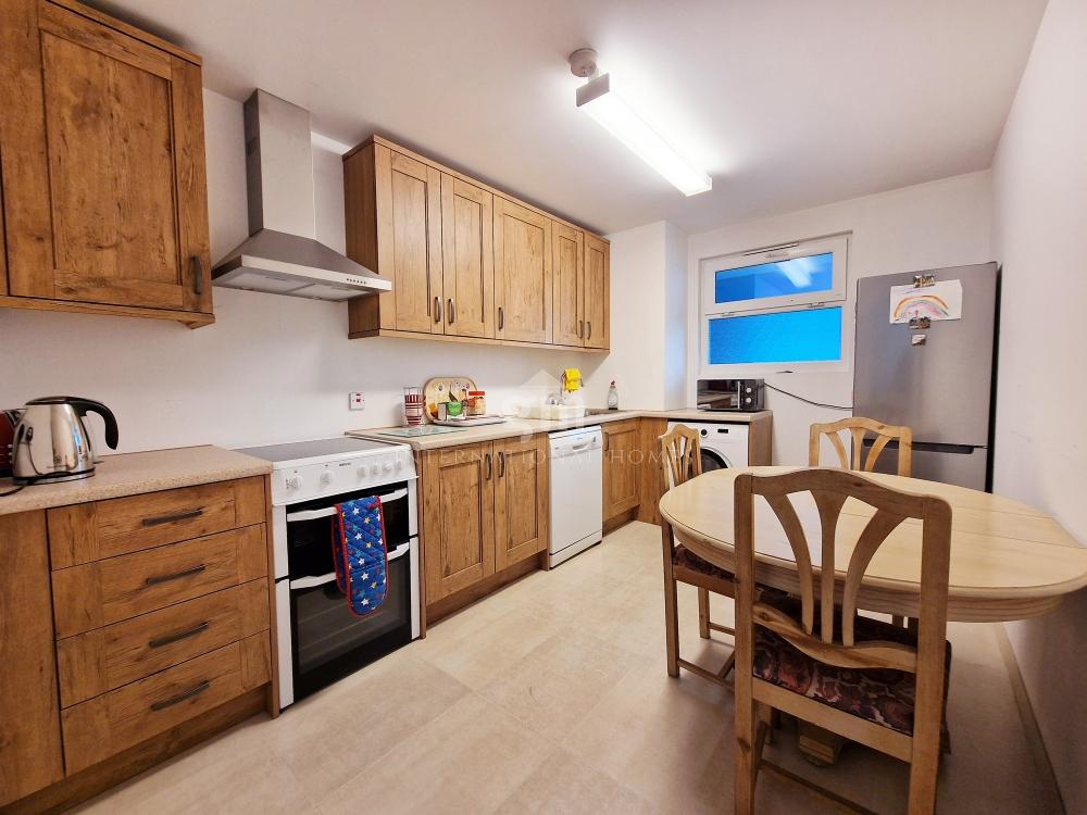 This low-floor, sea-facing property features a private balcony that enjoys open views of the surrounding area, creating a bright and welcoming atmosphere. The apartment comprises three spacious double bedrooms, a light-filled living room, and a separate, fully fitted kitchen, providing a comfortable and functional living space. Laminate flooring throughout adds a modern touch, while a utility cupboard offers additional storage. A private parking space is included for added convenience.