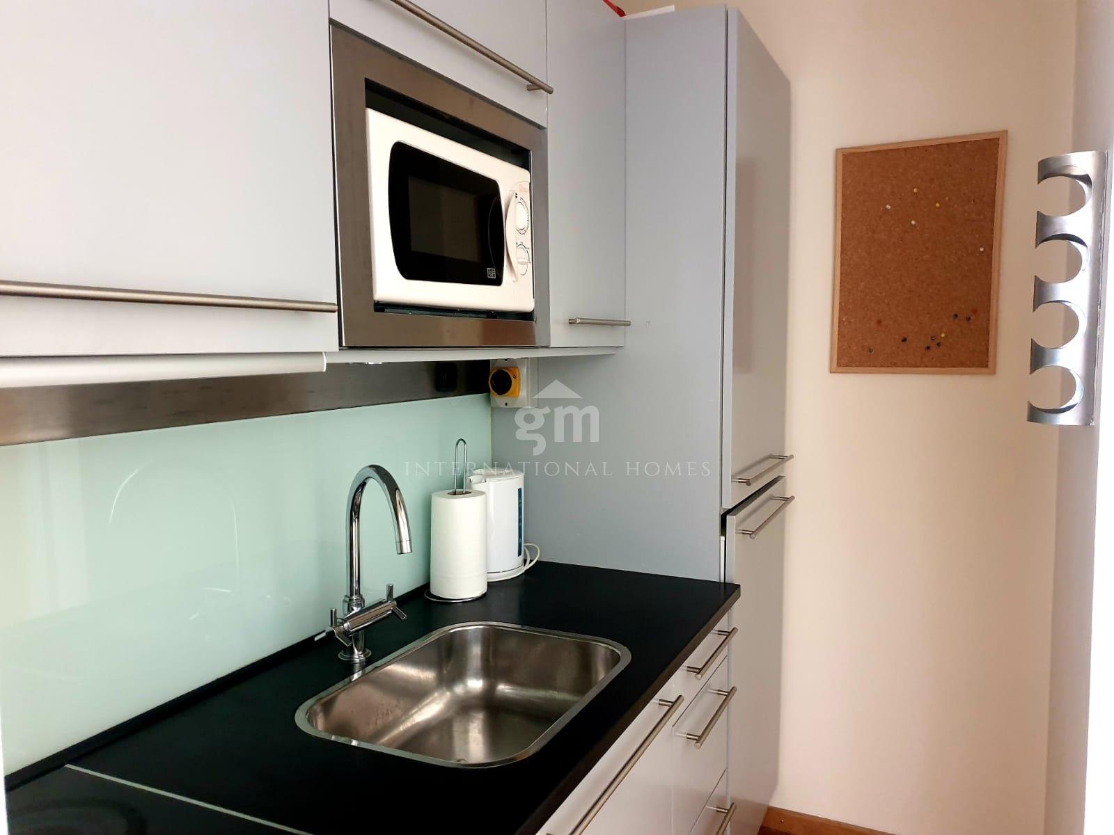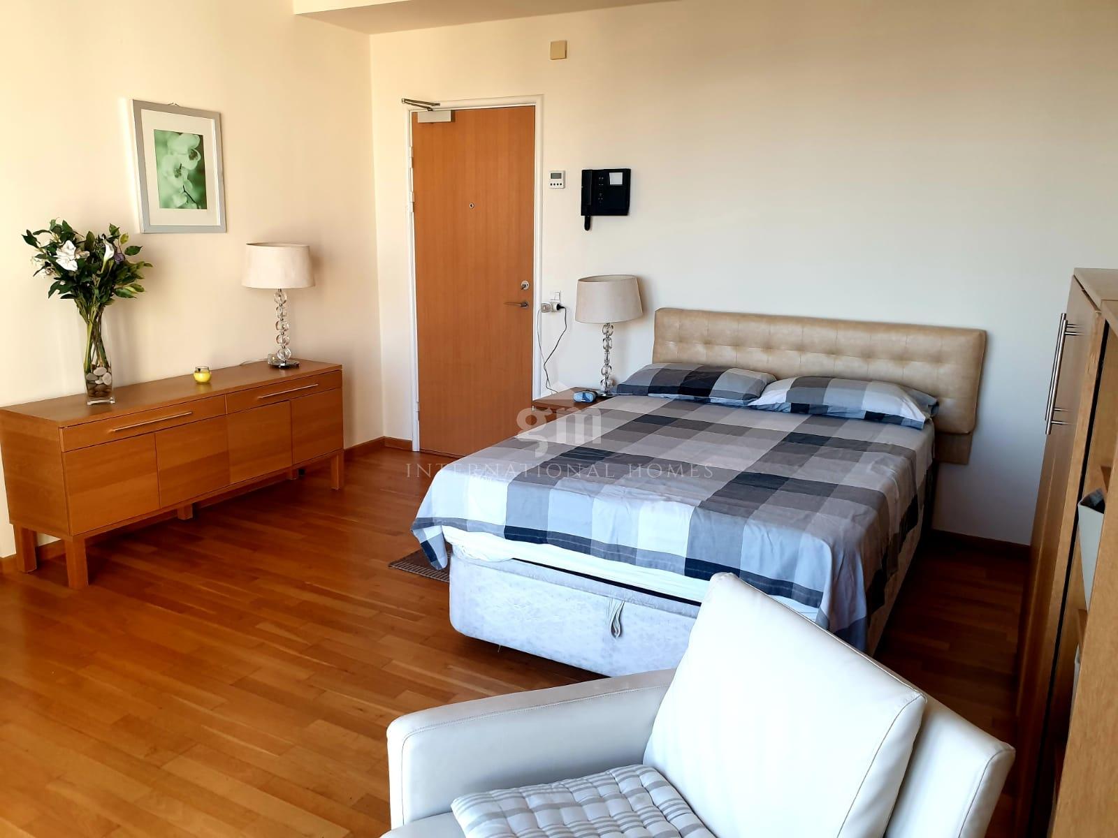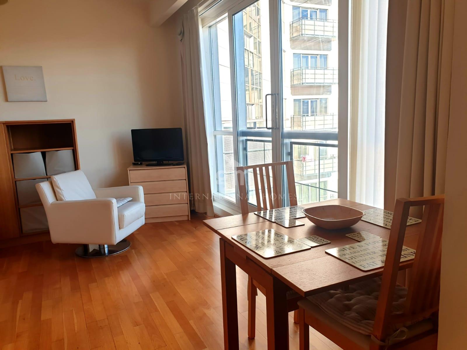 Ideally positioned within walking distance of the Town Centre and in the heart of Europort, the apartment is finished and furnished to an exceptionally high standard. It features a fully fitted modern kitchenette with top-of-the-range appliances, including a washing machine, along with ample built-in storage throughout.